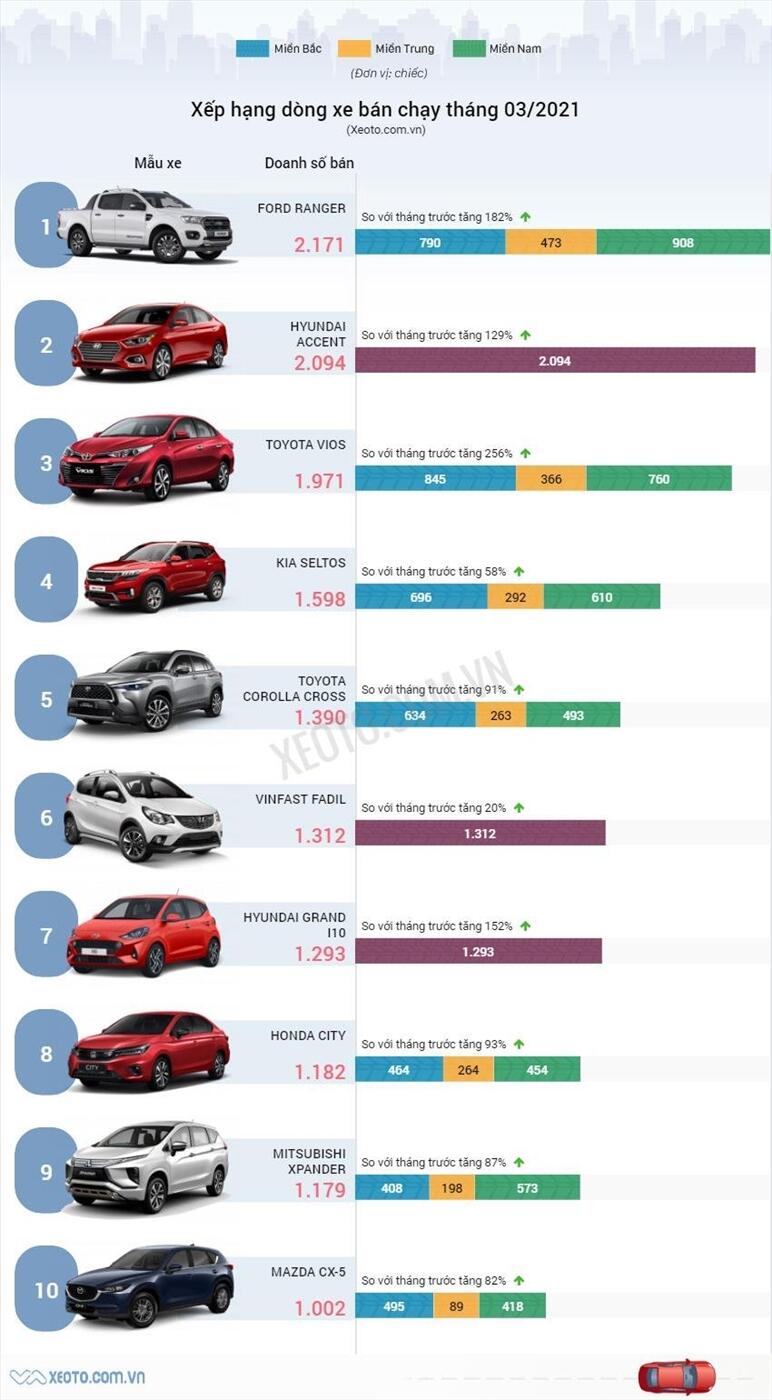 Bảng Xếp Hạng Dòng Xe Bán Chạy Nhất Tháng 03/2021